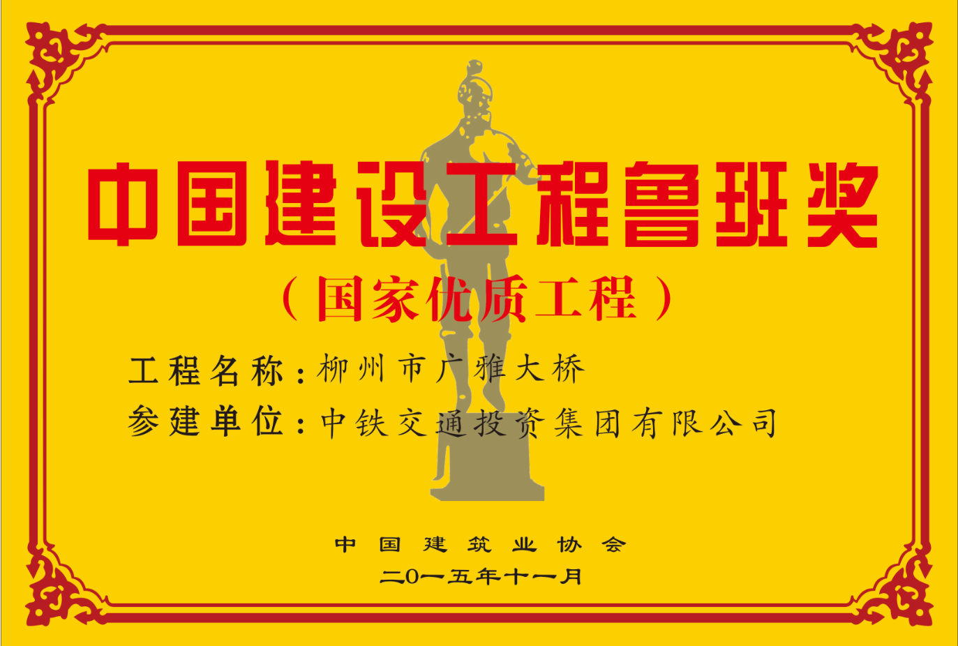 廣西柳州廣雅大橋榮獲中國建設工程魯班獎