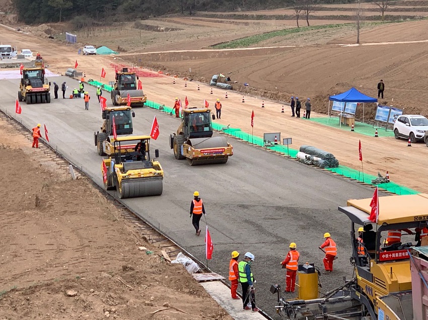 集團公司副總經(jīng)理、總工程師兼旬鳳韓黃公司總經(jīng)理龍偉深入施工現(xiàn)場進行督導(dǎo),現(xiàn)場鋪筑采用雙機聯(lián)合鋪筑和四鋼一膠組合碾壓方法,保證現(xiàn)場攤鋪及碾壓質(zhì)量,參建員工始終保持著高昂的工作熱情,嚴(yán)格按照施工標(biāo)準(zhǔn)、工藝、工法做好各項鋪筑工作,此次路面試驗段的順利攤鋪,標(biāo)志著旬鳳高速現(xiàn)場施工又向前邁了一大步,為后續(xù)路面水穩(wěn)底基層大范圍鋪筑提供了可靠保障。