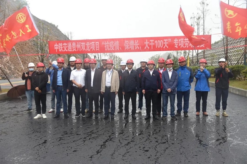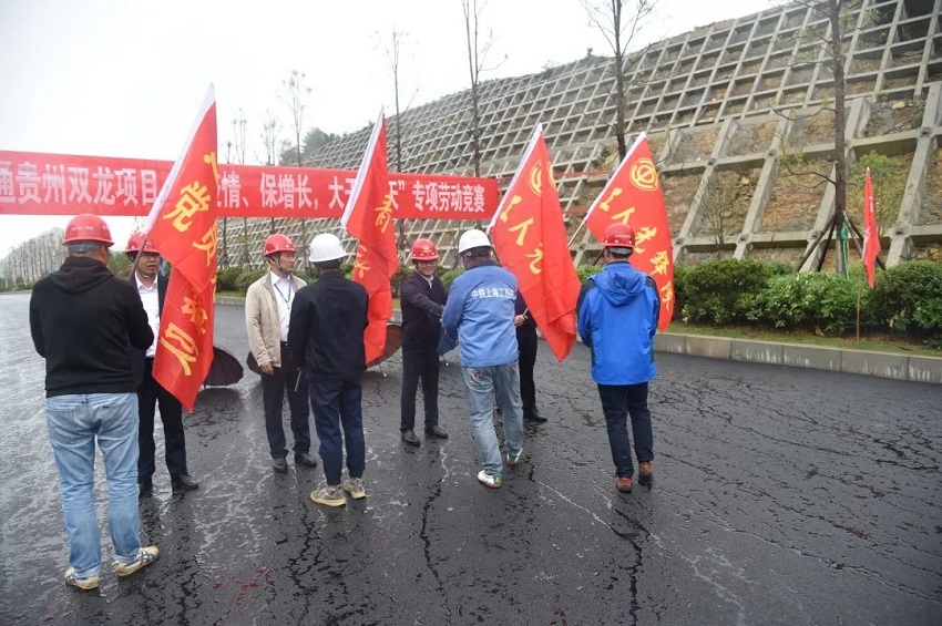 為認(rèn)真落實(shí)股份公司、集團(tuán)公司關(guān)于“抗疫情、保增長,大干100天”專項(xiàng)勞動(dòng)競賽動(dòng)員會(huì)精神,5月25日,貴州雙龍項(xiàng)目在環(huán)物流外環(huán)道路K8+500施工現(xiàn)場,組織展開雙龍項(xiàng)目“抗疫情、保增長,大干100天”專項(xiàng)勞動(dòng)競賽啟動(dòng)儀式。雙龍項(xiàng)目領(lǐng)導(dǎo)班子成員、各部門員工,各參建項(xiàng)目代表共計(jì)90余人參加了此次活動(dòng)。
