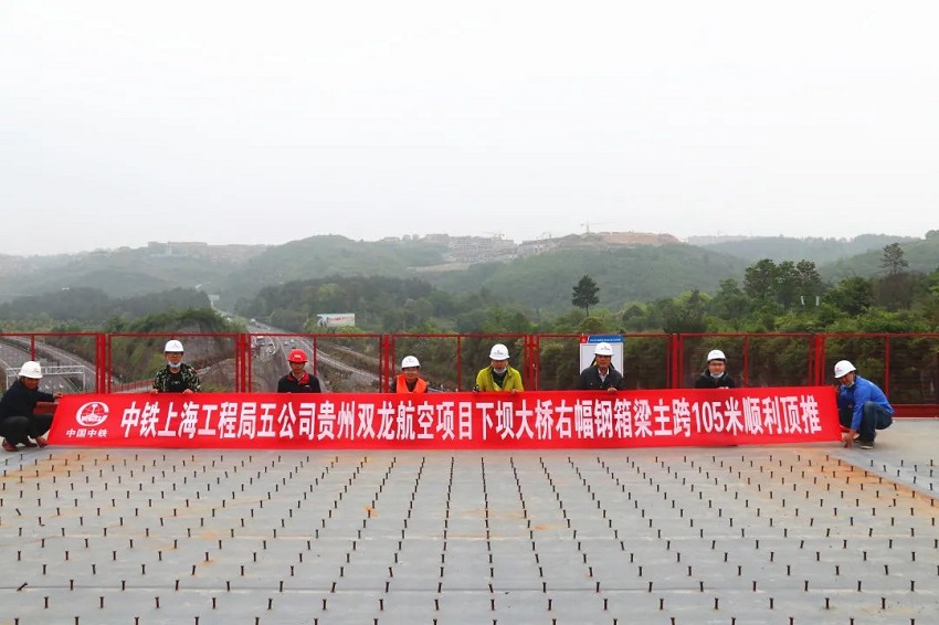 5月29日,由中鐵交通投資承建的貴州雙龍航空港項(xiàng)目物流外環(huán)道路下壩大橋工程,順利完成了貴州省最大跨度鋼箱梁頂推施工,標(biāo)志著貴州省重點(diǎn)工程雙龍航空港物流外環(huán)道路工程建設(shè)進(jìn)入最后沖刺階段。