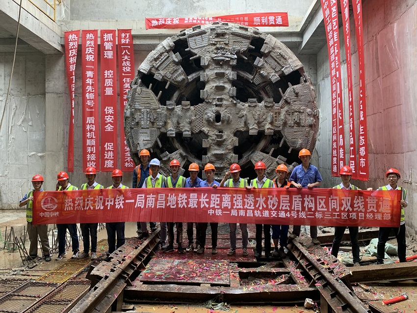 6月4日,由共青團(tuán)南昌市委命名的“青年先鋒號(hào)”盾構(gòu)機(jī)在地鐵4號(hào)線新洪城大市場站—丁家洲站右線隧道順利出洞,標(biāo)志著南昌地鐵最長距離(1736.7米)強(qiáng)透水砂層盾構(gòu)區(qū)間,實(shí)現(xiàn)全程不換刀雙線貫通,這一施工工法刷新了南昌地鐵盾構(gòu)施工記錄。