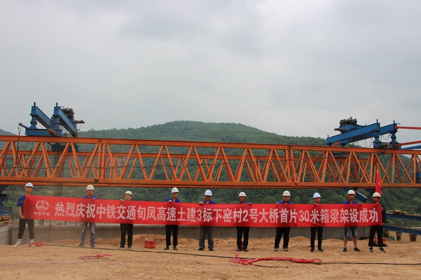 6月12日下午,中鐵交通旬鳳高速土建3標(biāo)下窯村2號大橋首片30米箱梁成功架設(shè)。下窯村2號大橋起訖里程YK254+366.5(ZK254+336.5)-K254+883.5,全長517米。地處居民區(qū),前期橋梁區(qū)域征拆拆除數(shù)量多、難度大,導(dǎo)致后期施工相對滯后。