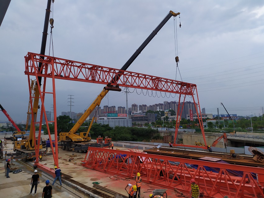 7月27日,隨著吊車的轟鳴聲,一臺鋪軌龍門吊緩緩升起,標志著金橋客運站鋪軌基地龍門吊正式架設。金橋客運站鋪軌基地是南寧地鐵5號線的鋪軌基地之一,建設之初場地存在高差,建鋪軌龍門吊走行線較困難,經(jīng)過多次比選設計方案,最后選擇了“一邊通過高架橋、一邊通過下沉”的方式來消除高差。經(jīng)過一個月建設,已完成鋪軌軌排井至末端的走行線安裝,正式開始架立鋪軌龍門吊,標志著鋪軌單位正式進入鋪軌。