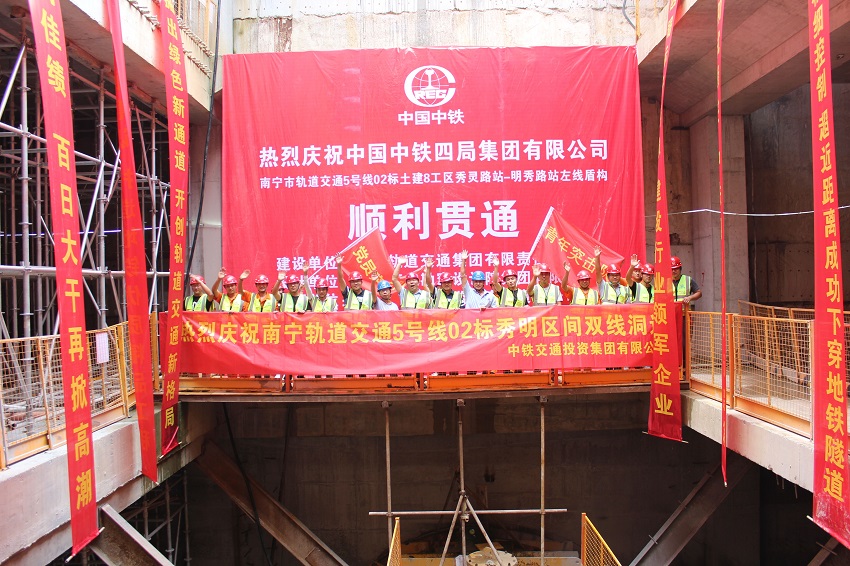 ▲7月20日,秀靈路站至明秀路站區(qū)間左線貫通標志著南寧地鐵5號線02標項目全線隧道順利實現(xiàn)“洞通”