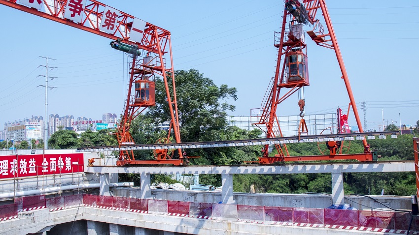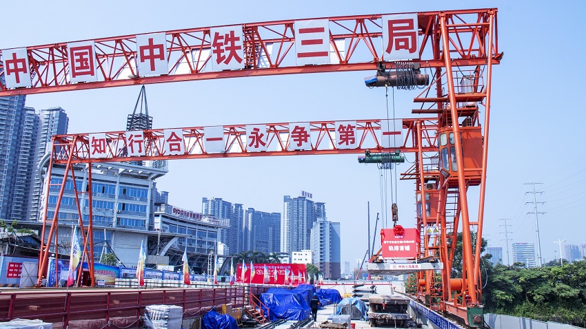 9月1日10時10分,在南寧地鐵5號線02標工程機電9工區(qū)金橋客運站鋪軌基地,軌道首鋪儀式現(xiàn)場彩旗飄揚,隨著“開始鋪軌”一聲令下,一節(jié)25m軌排被龍門吊穩(wěn)穩(wěn)吊起,緩緩下降安放至隧道內(nèi),標志著南寧地鐵5號線02標工程正式進入鋪軌大干熱潮。