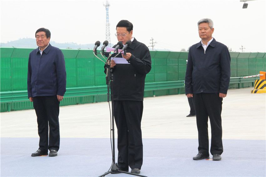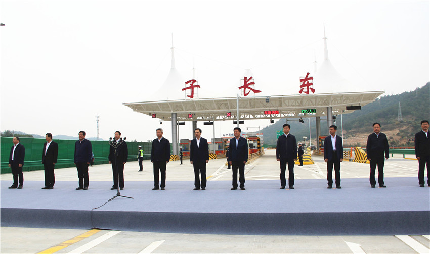 9月22日上午11:00,陜西清子高速公路子長東收費站和子姚高速公路通車儀式在子長東收費站舉行。陜西省委常委、延安市委書記徐新榮,延安市市長薛占海,延安市人大主任姚靖江,延安市政協主席薛海濤,陜西省交通運輸廳廳長夏曉中、副廳長黨延兵、總工程師楊文奇,子長市委書記雷興平,中鐵中南區域總部(中鐵交通)副總經理兼總工程師龍偉,以及延安市交通局、環保局及子長市政府和相關部門人員,綏延項目指揮部及各參建單位代表參加了通車儀式。儀式由延安市副市長王軍營主持。