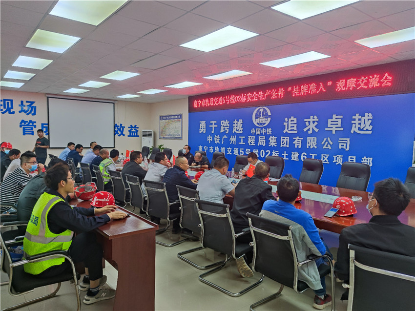 10月9日,南寧地鐵5號線02標(biāo)指揮部在6工區(qū)新秀公園站開展安全生產(chǎn)條件“掛牌準(zhǔn)入制”觀摩交流活動,指揮部業(yè)務(wù)部門人員及各工區(qū)經(jīng)理、安全總監(jiān)、安質(zhì)部長參加。