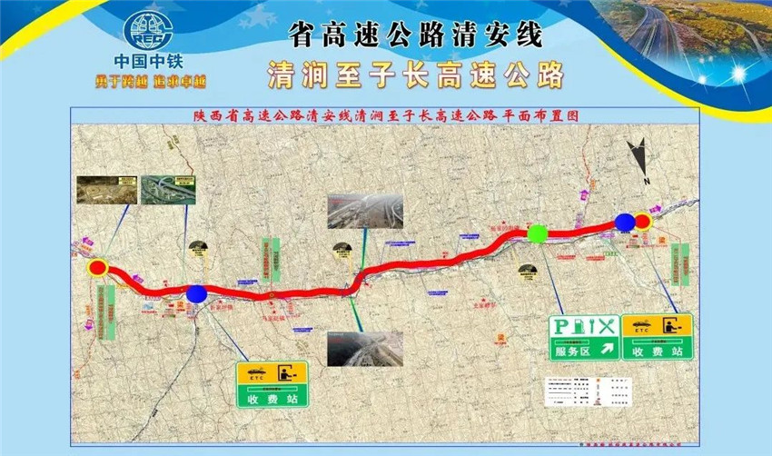 清澗至子長(zhǎng)高速公路是陜西省高速公路網(wǎng)規(guī)劃中清安線的重要組成部分,是與已通車運(yùn)營(yíng)的綏延主線(綏德至延川)打包捆綁的陜西省第一個(gè)高速公路PPP項(xiàng)目。項(xiàng)目起于清澗縣城以北的西賀家溝,設(shè)清澗北樞紐立交與綏延高速公路相接,終點(diǎn)在吳家坪東設(shè)子長(zhǎng)東立交連接線接G340,路線長(zhǎng)度約30公里,采用雙向四車道高速公路技術(shù)標(biāo)準(zhǔn),設(shè)計(jì)速度80公里/小時(shí),全線設(shè)互通立交3處,服務(wù)區(qū)1處,收費(fèi)站2處。
