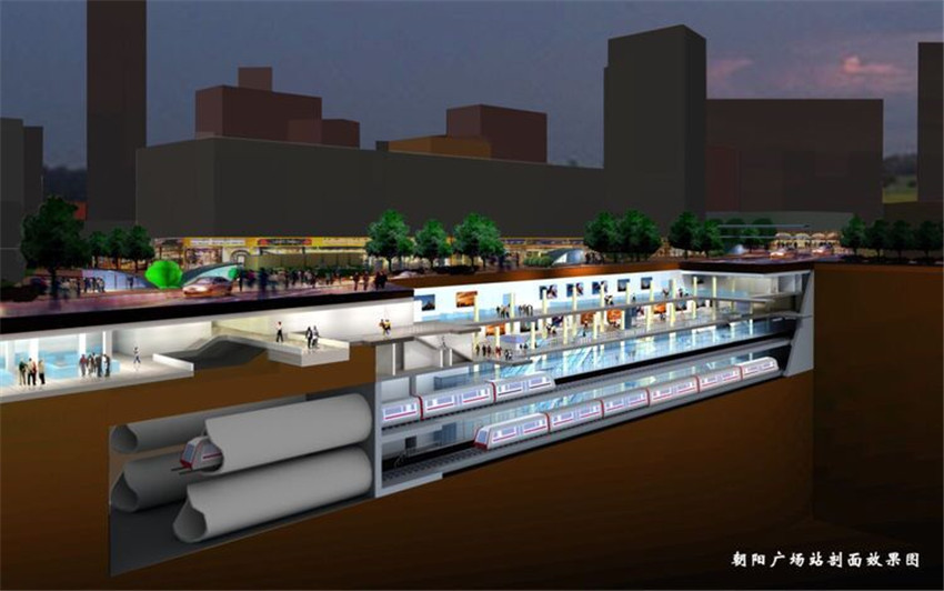 ▲南寧地鐵1號線朝陽廣場站剖面效果圖