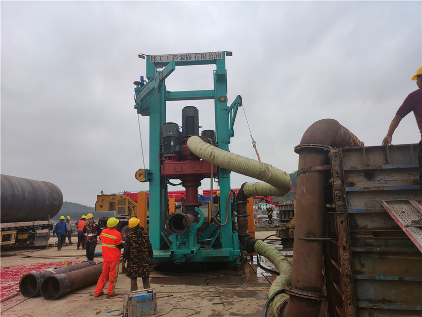 根據設計,沙坪河特大橋17#墩位于水中,水深3—5m之間,由于南寧市屬亞熱帶季風氣候,氣候濕潤,雨量充沛,地層由第四系沖積層粉質黏土、粉質黏土混砂、沖坡積層粉質黏土、坡殘積層土以及白堊系下統新隆組泥質粉砂巖和砂巖組成,且沙坪河周邊均為國家生態公益林,無法直接通過修建施工便道進入施工現場,前期施工極其困難。項目公司克服重重困難,經多方溝通協調,從沙坪河特大橋大里程側引入施工棧橋,并沿著棧橋搭設水上作業平臺,作業平臺共計2124㎡,鋼護筒44根(17#主墩樁基共44根,設計樁長39m),現場已具備開鉆條件。