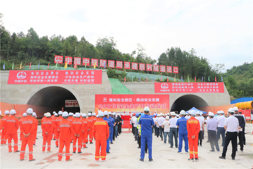 6月1日,爐慈桑龍項(xiàng)目聯(lián)合湖南省交通建設(shè)質(zhì)量安全監(jiān)督管理局在爐慈高速慈利隧道進(jìn)口舉辦“安全生產(chǎn)月”活動(dòng)啟動(dòng)儀式,中鐵交通(中鐵中南區(qū)域總部)副總經(jīng)理、中鐵中南區(qū)域(湖南)總部指揮長(zhǎng)、項(xiàng)目公司總經(jīng)理黨世偉出席儀式并作動(dòng)員講話。