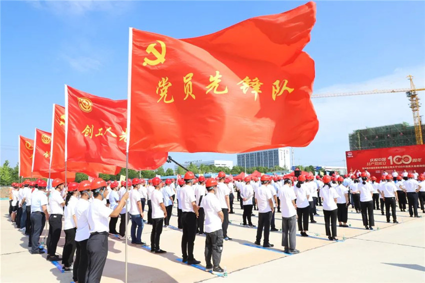 大會表彰了先進集體和個人,重溫了入黨誓詞,對“大干100天”專項勞動競賽進行了動員和部署,參建項目代表進行了表態(tài)發(fā)言,對黨員先鋒隊、工人先鋒號、青年先鋒崗進行了授旗。