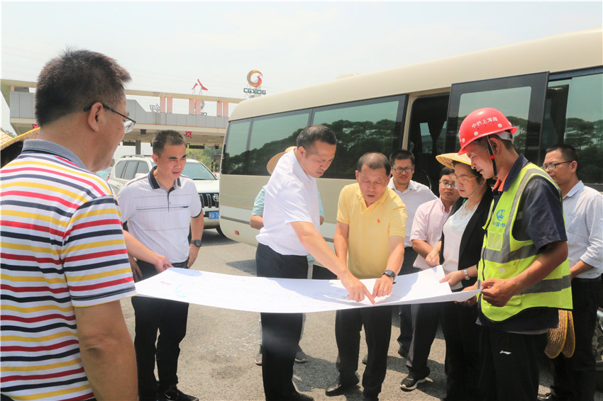 橫州市代理市長梁楓到項目羅鳳河和魯塘江大橋等工地現場檢查指導,認真聽取了項目現場管理、施工進展、過程安全質量管控、施工重難點及重要節點工期等匯報,詳細詢問了項目疫情防控措施、征地拆遷難點等工作情況,對項目總體施工形象及現場標準化建設給予充分肯定。