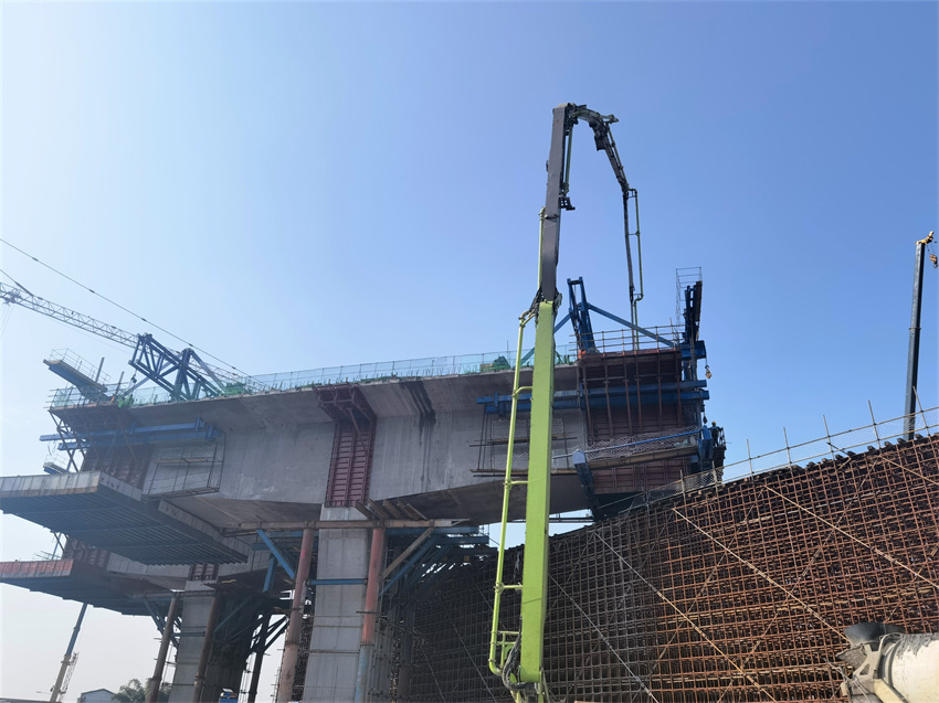 11月12日,成達(dá)公司新機(jī)場東連接線鐵路上跨橋順利完成第一片現(xiàn)澆梁澆筑,左幅掛籃施工進(jìn)行到第4節(jié),為實(shí)現(xiàn)全線通車目標(biāo)又邁進(jìn)了一步。