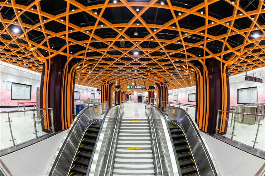 ▲觀洲站:桃花元素象征城市商貿的繁榮和旺盛